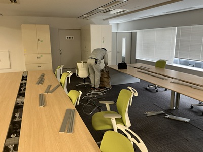 オフィスの移転に伴う電気・電話・LAN・映像機器等の配線撤去のご依頼を受けているのですが、今回の作業は移転する荷物等の集積場所の配線撤去で、本作業の準備的な位置づけでの対応です。